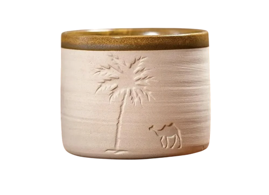 ابدأ صباحك بأناقة مع كوب قهوة سيراميك المصمم بشكل فني يجسد جمال الصحراء وهدوءها. يتميز الكوب بتفاصيل رائعة تظهر فيها صورة الجمل وأشجار النخيل، ليمنحك إحساساً بالسكينة مع كل رشفة من قهوتك المفضلة. سواء للاستخدام الشخصي أو كهدية فاخرة لعشاق القهوة، فهو يجمع بين الذوق الرفيع والجودة العالية.